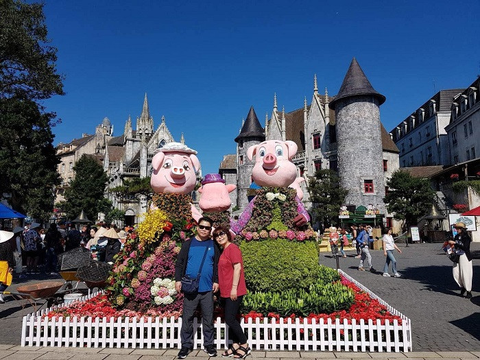 Đôi vợ chồng heo thật hạnh phúc trong tiểu cảnh “Lứa đôi” tại khu vực trung tâm làng Pháp cũng dành được thật nhiều tình cảm của du khách.