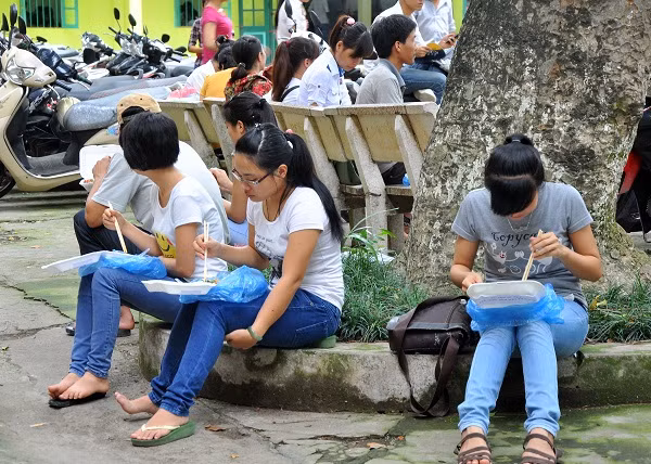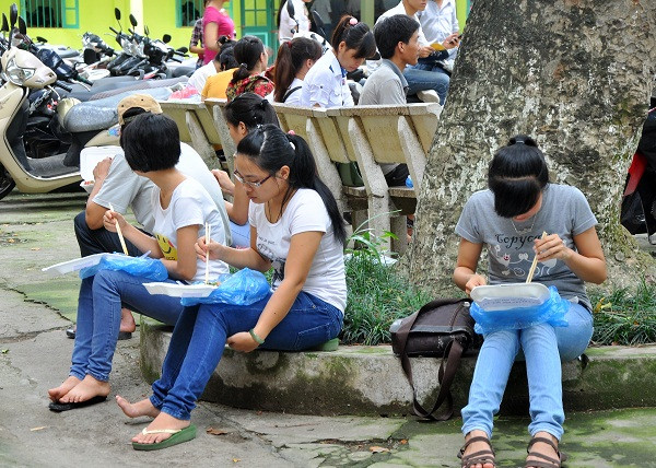 | Bữa trưa ại kí túc trường ĐH Thương Mại, sĩ tử và phụ huynh |