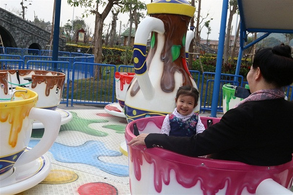 Rất nhiều em nhỏ cùng bố mẹ đã ngồi hàng giờ trong những chiếc cốc kỳ diệu, bay bổng với những vòng xoay nhiều cấp độ.