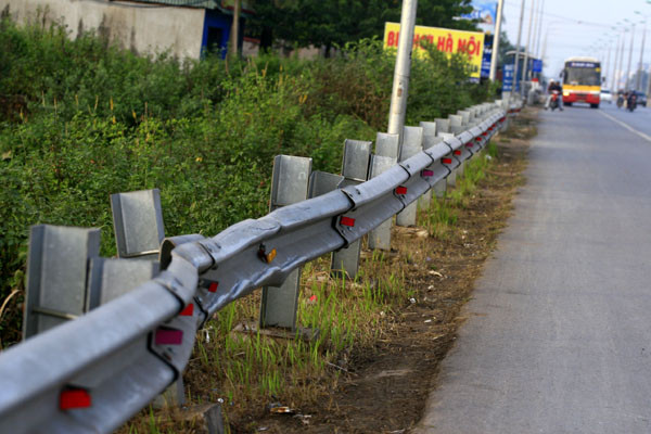 | Không chỉ chăn thả bò vô tư, nhiều người dân sống tại khu vực đường Bắc Thăng Long - Nội Bài còn tháo hẳn dải phân cách đã được lắp đặt để sang đường nhanh hơn |