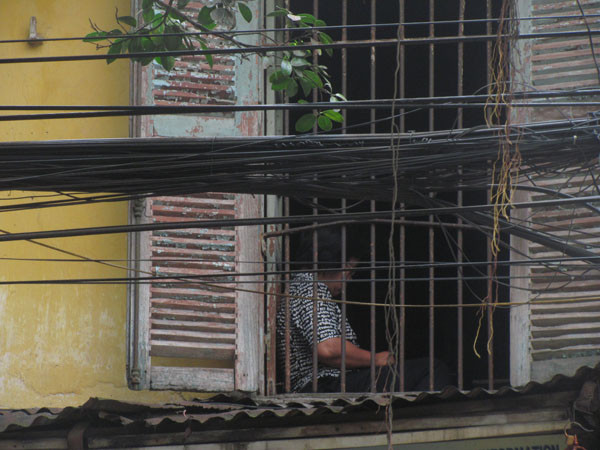 | Sự xuống cấp của những ngôi nhà cổ cộng thêm sự chằng chịt của dây cáp. |
