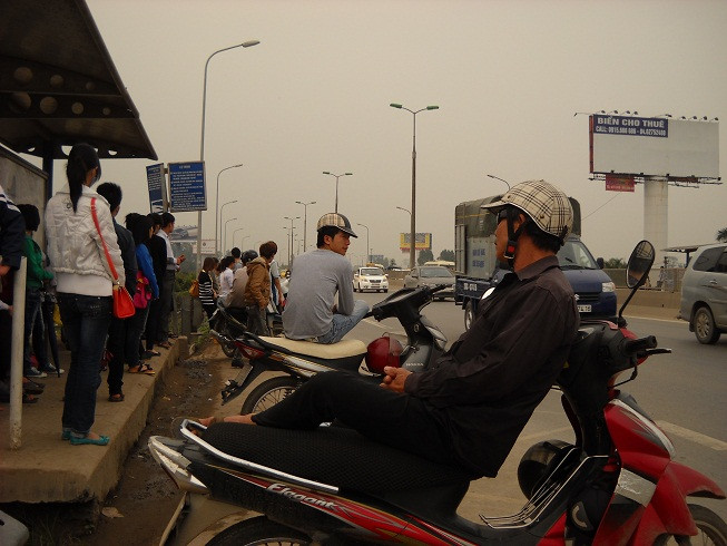 | Tại mỗi điểm dừng xe buýt trên tuyền đường này trung bình có từ 4 đến 5 người hành nghề xe ôm, có những điểm có đến chục người. |