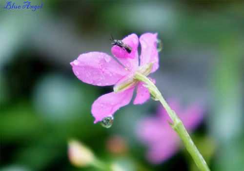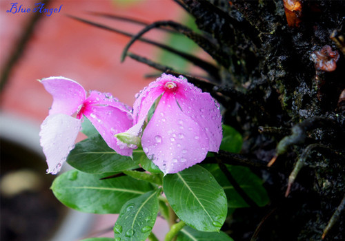 | Nhánh cây đu đủ nâng đỡ và che chở cho nàng hoa tỏa sáng dưới mưa. |