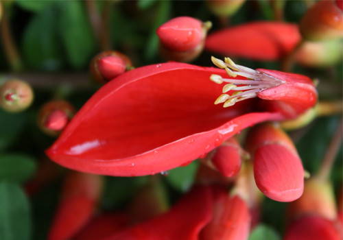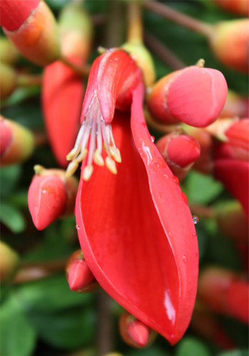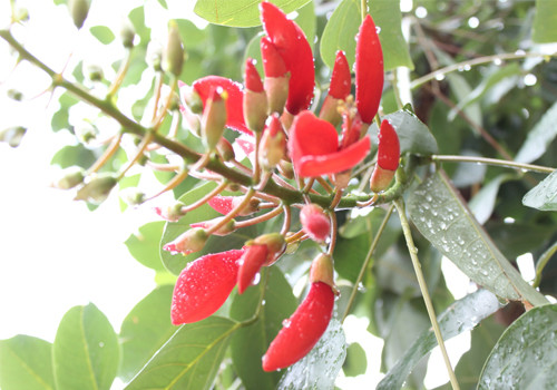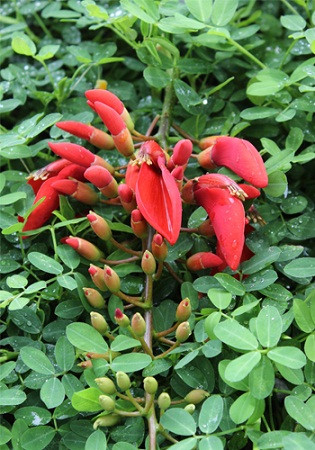 Hoa osaka đỏ còn có tên là hoàng hậu đỏ, đậu san hô đỏ, vông màu gà, hoa hồng môi... Thời gian này đang là mùa hoa osaka nở rộ. Loài hoa này không chỉ đẹp mà còn là một vị thuốc quý, hạt được sử dụng trong dân gian để chữa bệnh ung thư, vỏ cây đắp cầm máu vết thương và chữa được sốt rét, bệnh gan, thấp khớp... Ảnh chụp tại Móng Cái, Quảng Ninh.