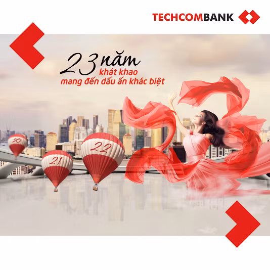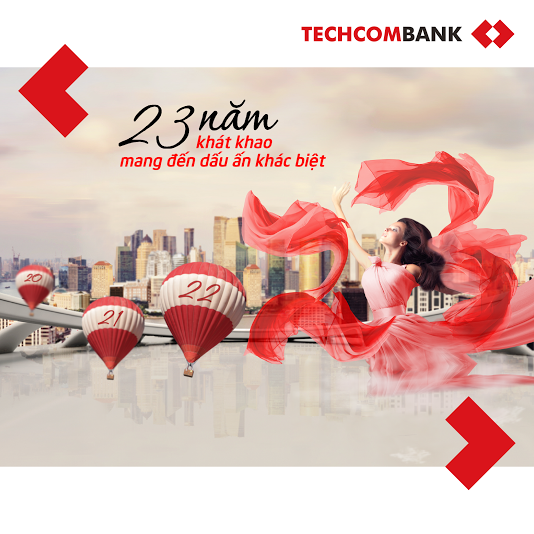 Từ ngày 15/8 – 15/11/2016, Ngân hàng Techcombank giới thiệu tới khách hàng chương trình ưu đãi “23 năm khát khao mang đến dấu ấn khác biệt” nhân dịp kỷ niệm 23 năm thành lập ngân hàng.