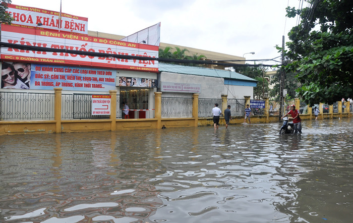 Tại bệnh viện 19.8 (Bộ Công An) là khu vực chịu ngập úng nghiêm trọng. Hầu hết các con đường xung quanh bệnh viện đều bị ngập úng. Cuộc sống, sinh hoạt của người dân quanh khu vực này cũng bị đảo lộn bởi nước chàn vào nhà.