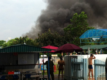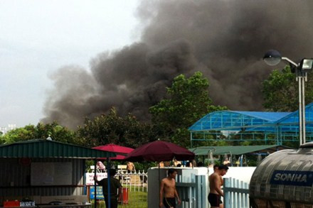 | Khói đen mù mịt bốc lên từ hiện trường đám cháy. |