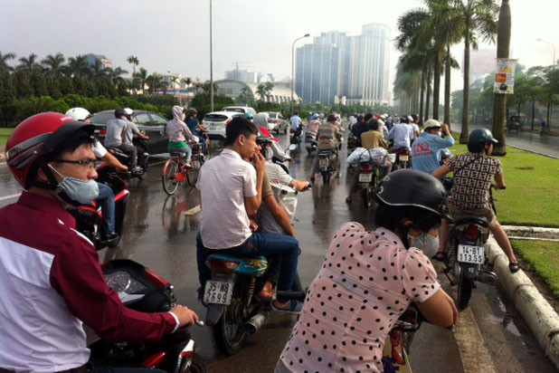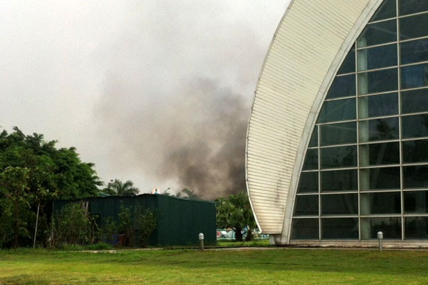 Theo như ghi nhận thì đến khoảng 8 giờ sáng nay một ngọn khói lớn bốc lên từ phía khu vui chơi giải trí gần cung thể thao dưới nước (đối diện sân vận động Quốc gia Mỹ Đình), đám khói bốc lên cao hàng chục mét. Có rất đông người dân hiếu kỳ đứng xem khiến giao thông tắc nghẽn cục bộ.