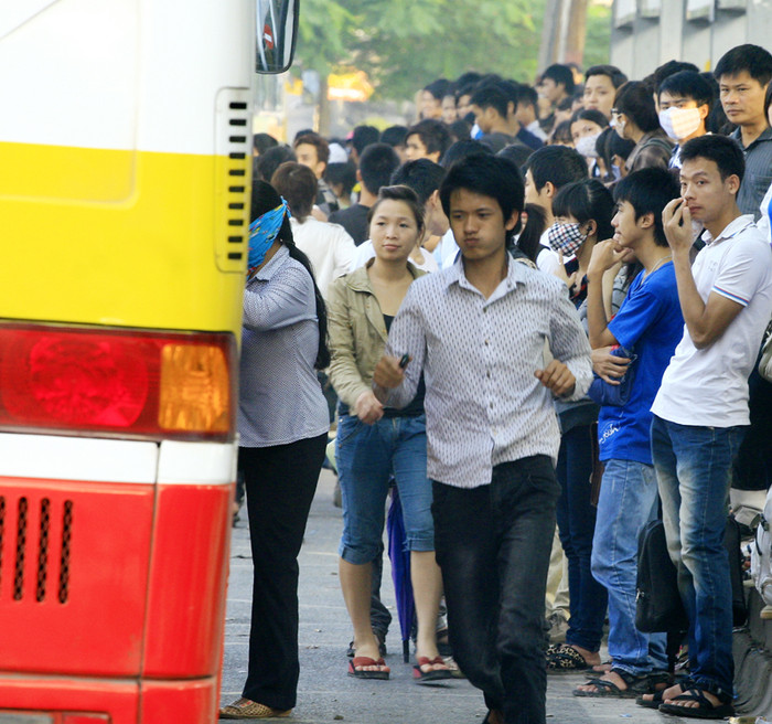 | Bao giờ những cảnh như thế này mới không còn ở các bến xe bus Hà Nội ? |