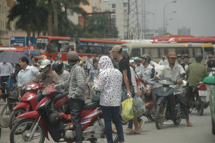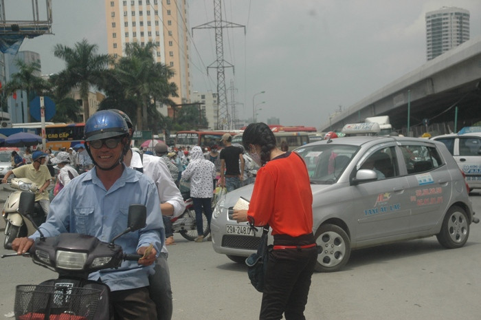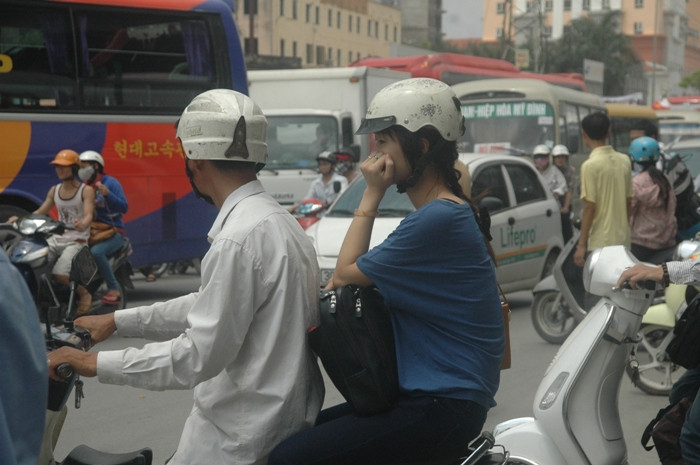 | Cô gái này đang đi xe ôm ra bến Mỹ Đình để bắt xe về quê, "đường đông quá" |