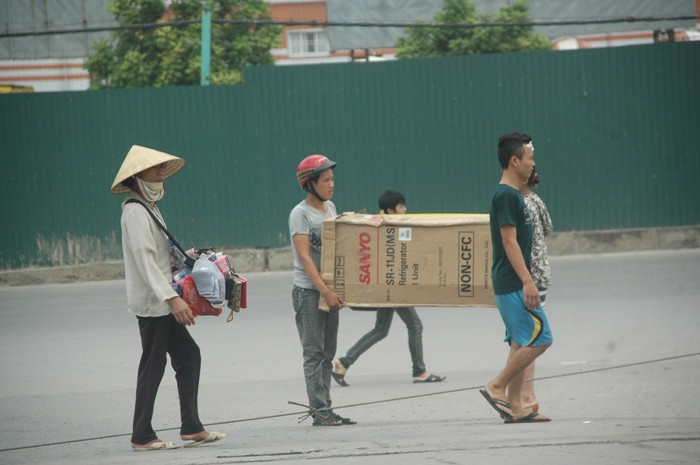 | Ai cũng tay xách, nách mang đủ các loại đồ |