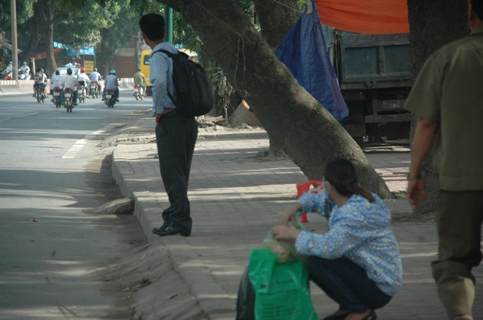 | Bác bán bánh mì đứng đợi người qua đường (ảnh Viết Cường) |
