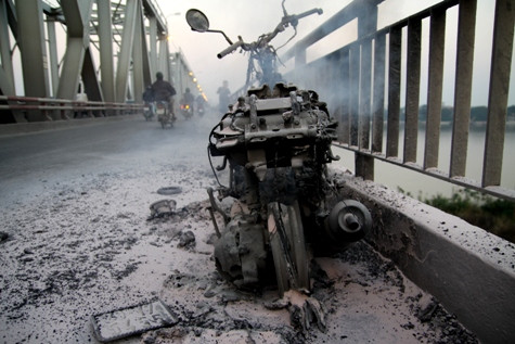 BẤM VÀO ĐÂY XEM CHÙM ẢNH CHIẾC XE SYM CHÁY RỤI TRÊN CẦU CHƯƠNG DƯƠNG