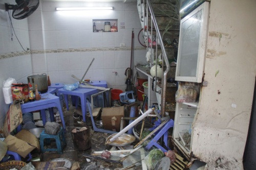 | Hiện trường vụ tai nạn tại quán phở số 35, phố Trung Liệt, Hà Nội. |