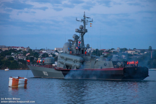 | Ngày 4 tháng 7 năm 2014, Hạm đội Biển Đen Nga tập trận quy mô lớn với 20 tàu chiến và tàu bảo đảm (ảnh minh họa, ) |