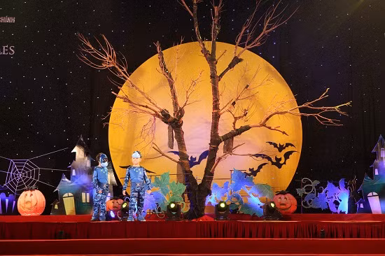 Không chỉ có vậy, Lễ hội “Ma” năm nay tại Vinhomes Riverside càng trở nên sôi động với hàng loạt tiết mục văn nghệ “cây nhà lá vườn” do chính cư dân nhí biểu diễn theo các chủ đề “Truyền thuyết lễ hội Halloween”, “Gia đình hạnh phúc” và Cuộc sống thanh bình”…