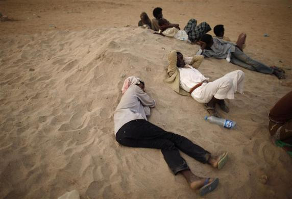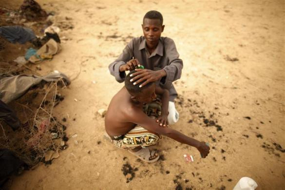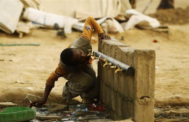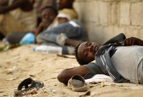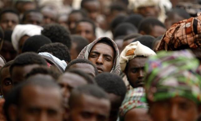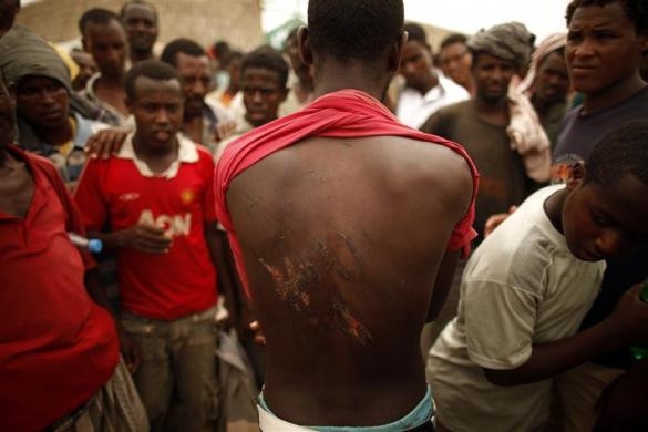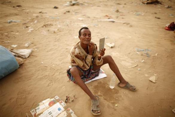 | Mọi sinh hoạt hàng ngày của những người di cư Ethiopia phải diễn ra ở ngoài trời và trong cảnh thiếu thốn trầm trọng. |