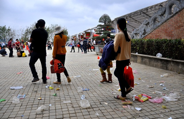| Đâu đó vẫn xuất hiện những hình ảnh không đẹp của các vị khách hành hương về chùa Bái Đính. |