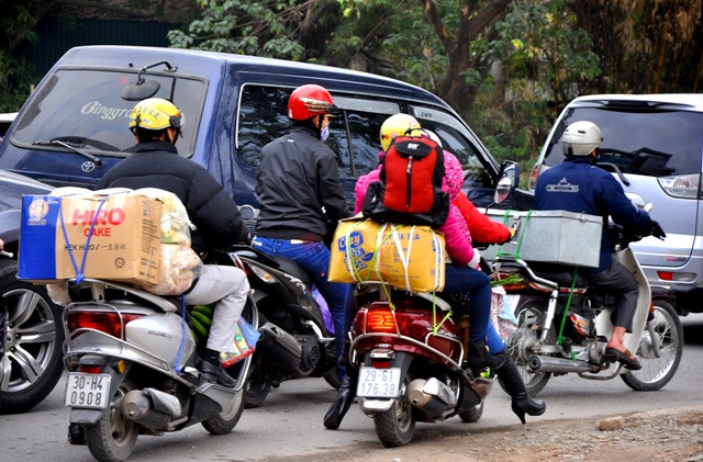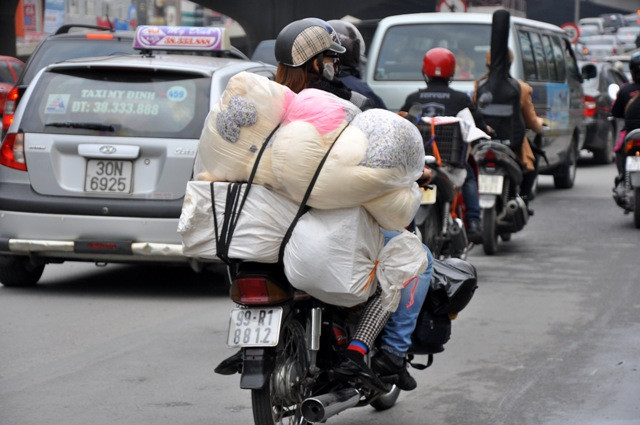 | Sau ngày làm việc cuối cùng (27 tháng Chạp) mọi người bắt đầu kỳ nghỉ Tết, những người đi làm xa quê đều đổ ra đường để về với gia đình. |