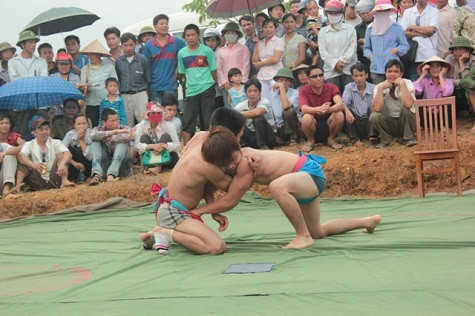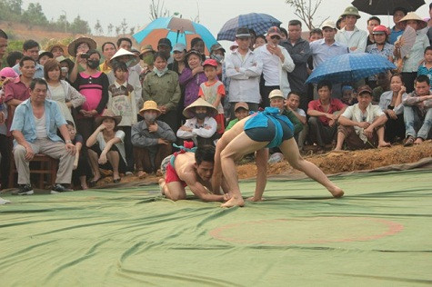 | Đấu vật thể hiện sự mạnh khỏe dẻo dai của người đàn ông. Để có mặt tham gia lễ hội này, các võ sĩ đã phải trai qua nhiều trận đấu với những người đàn ông trong bản làng. Người chiến thắng sẽ đại diện cho dân tộc ấy thi đấu. |
