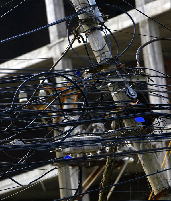 | Nặng trĩu những bó dây cáp to đùng vít cột điện |