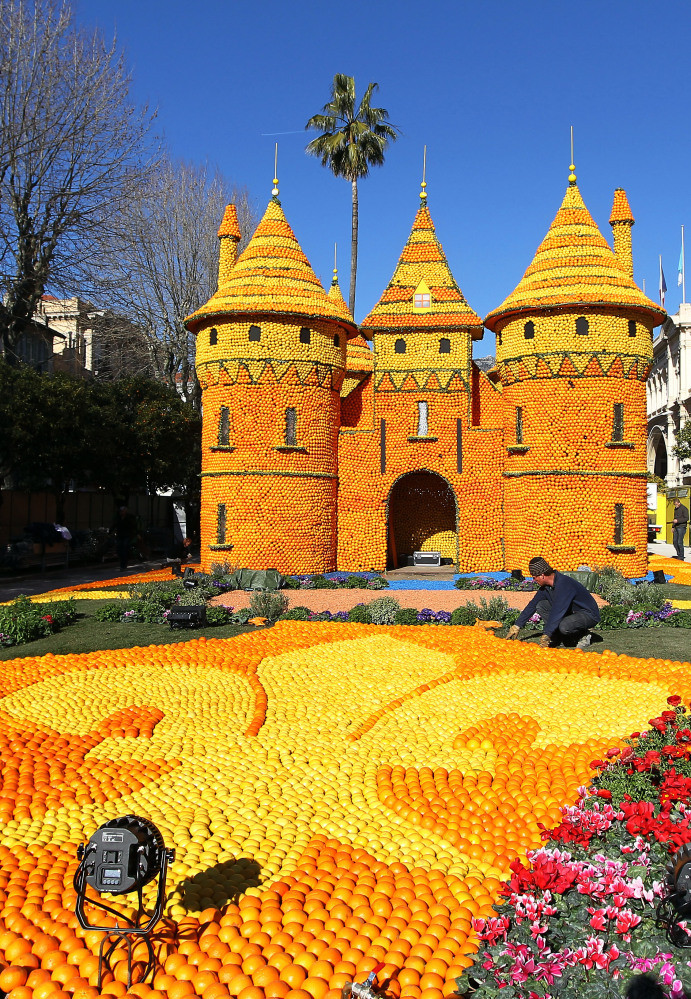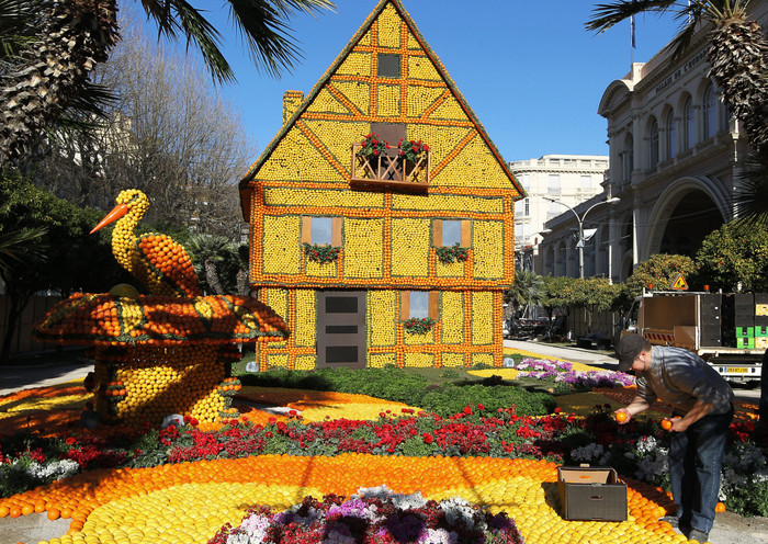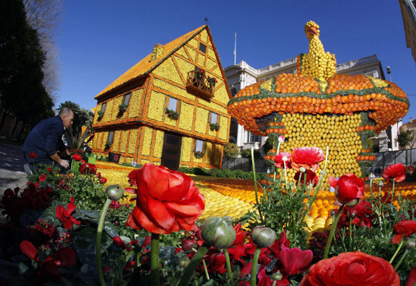| Hàng trăm tấn chanh và cam dưới bàn tay khéo léo của những nghệ nhân đã được tạo hình trở thành các tác phẩm độc đáo. |