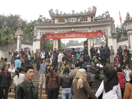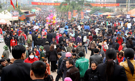 | Dòng người đông nghẹt tiến vào khu vực lễ hội. |