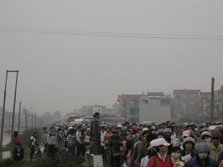 | Dòng người ùn ùn đổ về hàng năm thường xuyên gây ra cảnh tắc nghẽn giao thông tới hàng km trên tuyến đường dẫn vào hội Lim. |