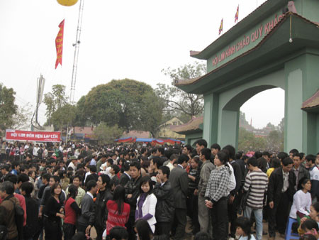 | Ở khu vực cổng sân chính cũng là cảnh đông đúc người đi dự hội. |