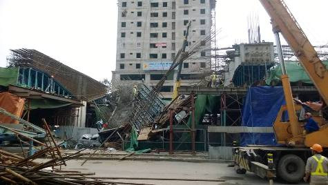 Một số hình ảnh hiện trường vụ sập giàn giáo đến chiều nay...