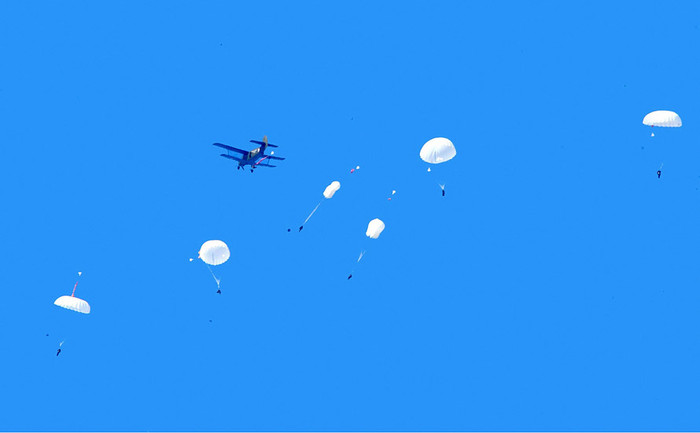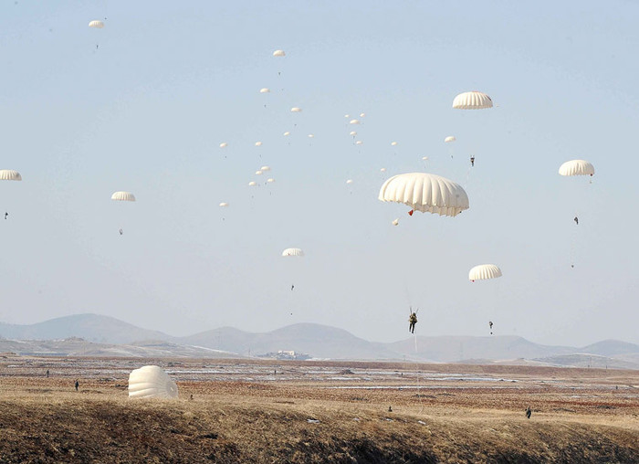 Binh lính Triều Tiên diễn tập nhảy dù.