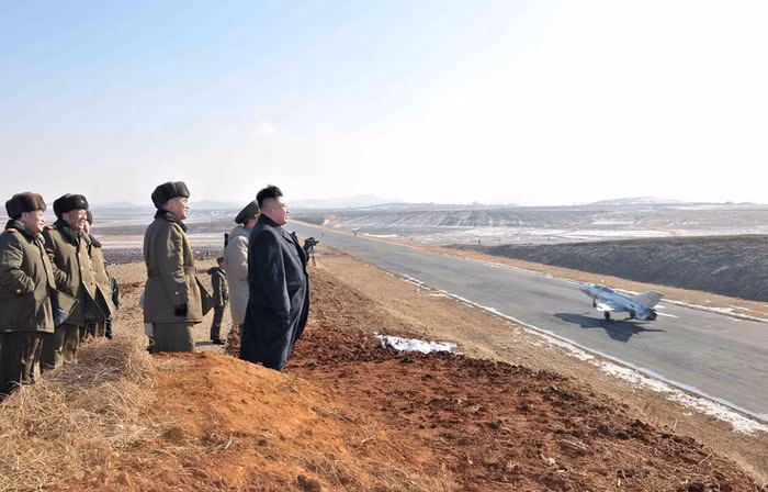 Nhà lãnh đạo Triều Tiên thị sát một buổi diễn tập cất cánh, hạ cánh của lực lượng không quân hồi cuối tuần trước.