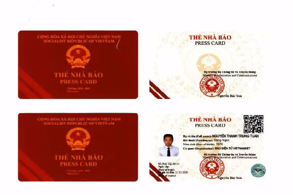 3. Hình thức: Nền trước màu vàng, ở giữa in hình quốc huy và họa tiết trống đồng xung quanh; nền sau màu đỏ. Thẻ Nhà báo có 02 ngôn ngữ tiếng Việt và tiếng Anh.