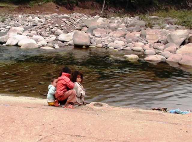 | Dưới cái lạnh thấu xương, thấu thịt chiều, những em nhỏ bản Ka Ai, xã Dân Hóa, huyện Minh Hóa (Quảng Bình)vẫn ngồi chơi bên suối, với những chiếc áo mong manh không đủ ấm |