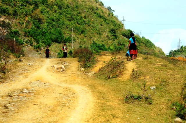 | Những lúc bố mẹ vắng nhà, mình em vẫn vào rừng nhặt củi khô về đun cơm |