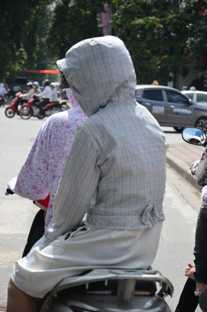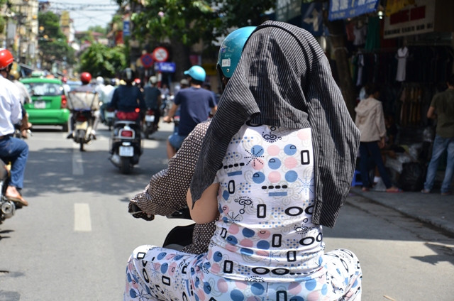 | Mỗi khi các chị em, phụ nữ ra ngoài đường khi trời nắng nóng đều “phủ kín” khắp người. |
