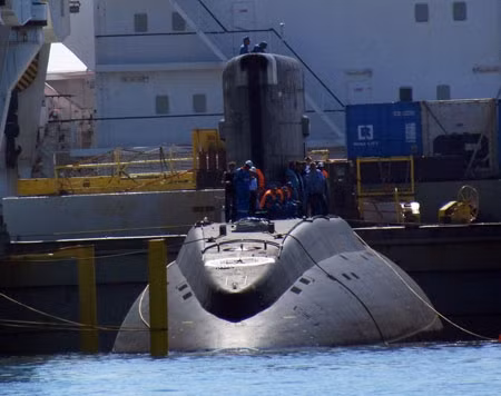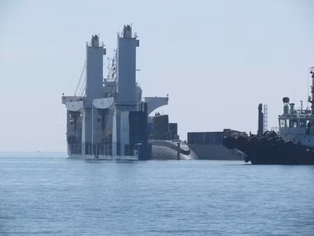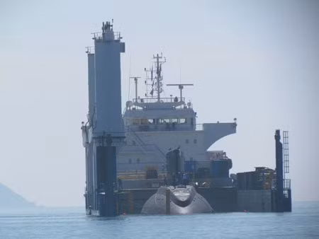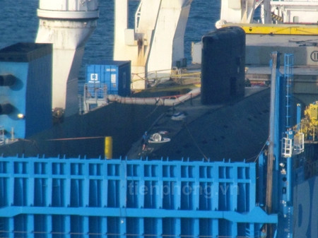 Lúc 9h20, tàu Rolldock Sea đã chìm gần đến mức tối đa để chuẩn bị cho tàu ngầm Hà Nội - HQ 182 thoát ra. Một số hình ảnh được Tiền Phong online cập nhật:
