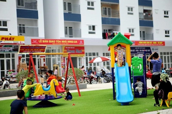 Không chỉ thỏa thích vui đùa trong không gian xanh, tại khu đô thị Thanh Hà, các em nhỏ còn có nhiều không gian tham gia nhiều hoạt động vui chơi thú vị do chủ đầu tư thiết kế không gian và đầu tư như đu quay, bập bênh hay ván trượt…