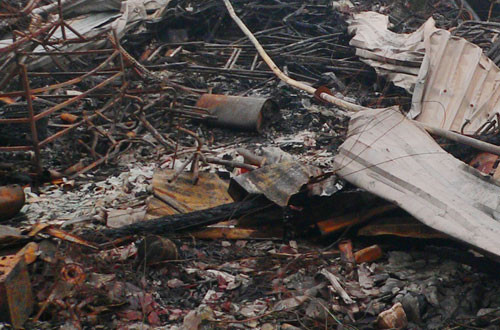 | Nhà cửa bị ngọn lửa thiêu rụi hoàn toàn. |