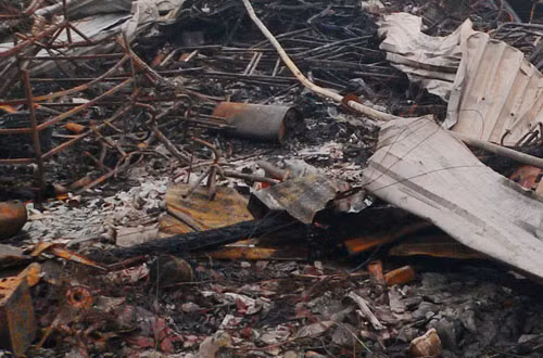 | Hàng chục căn nhà bị cháy ra tro. |