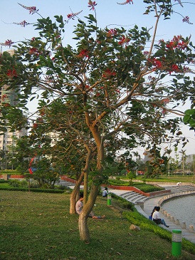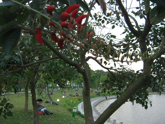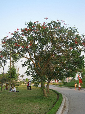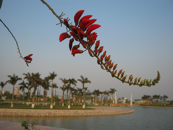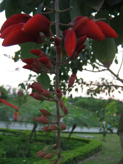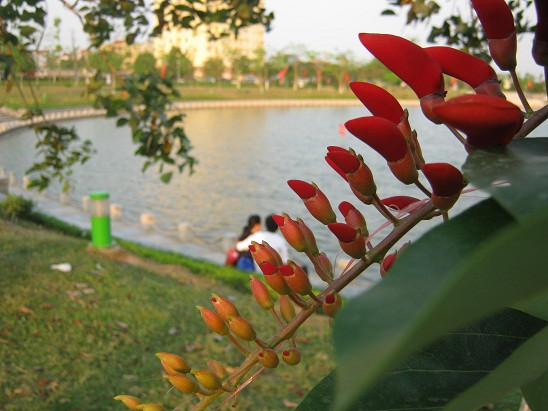 | Móng rồng trồng tại công viên Hòa Bình với màu hoa đỏ thắm. |