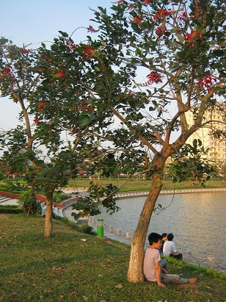 | Đi dạo dưới tán hoa móng rồng. |