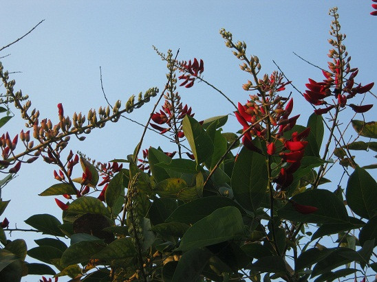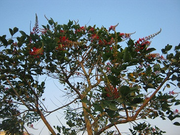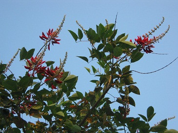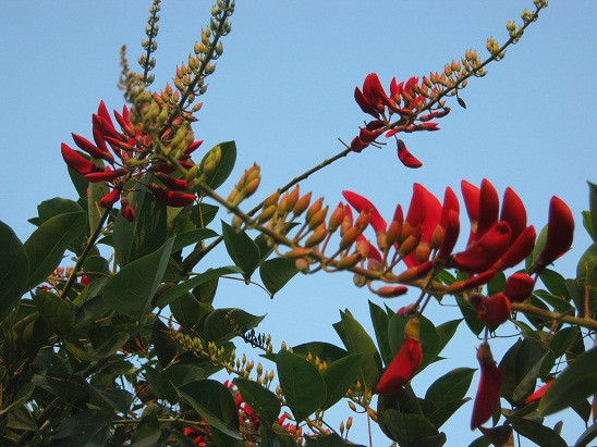 | Dưới nền trời xanh biếc, móng rồng nổi bật với sắc đỏ của mình. |