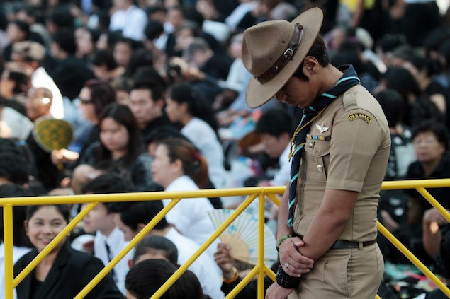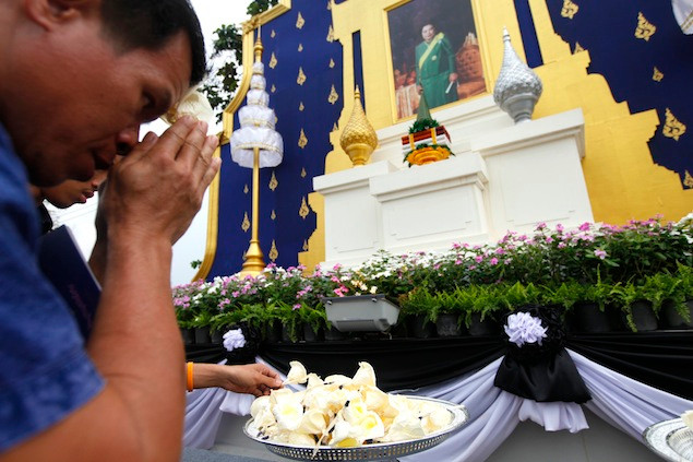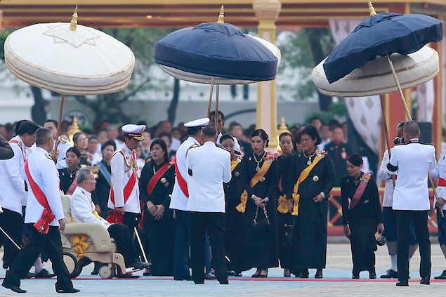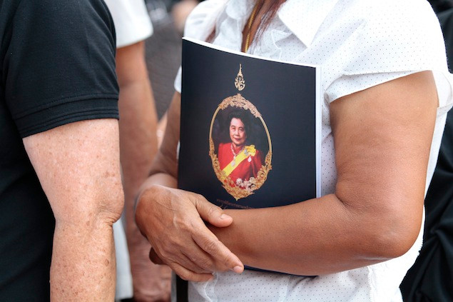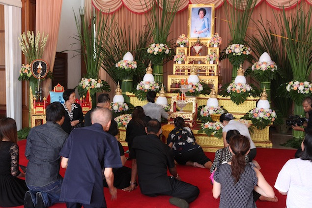 Vua Bhumibol Adulyadej tại tang lễ của người chị gái.