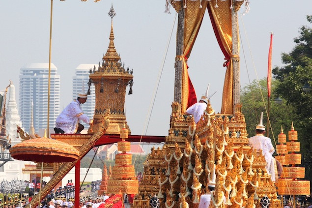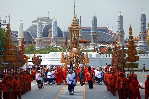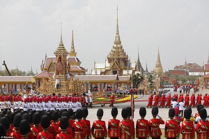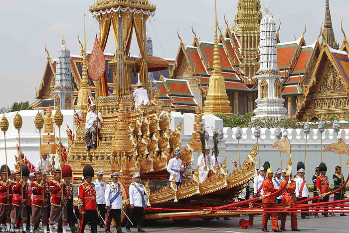 (GDVN) - Ngày 9/4, Vua Thái Lan Bhumibol Adulyadej (84 tuổi) đã xuất hiện trước công chúng lần đầu tiên trong hơn 2 năm nằm viện để tham dự nghi lễ Sanam Luang để hỏa táng công chúa Bejaratana Rajasuda cùng đông đảo người dân nước này. Chiếc kiệu vàng lộng lẫy mang thi thể của công chúa do 200 người đàn ông kéo trên đường phố Bangkok đã thu hút sự chú ý của đông đảo người dân và các phương tiện truyền thông trong, ngoài nước. Công chúa Rajasuda là người con gái duy nhất của Vua Vajiravudh (Rama VI). Bà đã qua đời vì bệnh nhiễm trùng máu vào tháng 7/2011 ở tuổi 85.