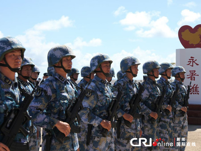 Lính Trung Quốc bồng súng đón Tưởng Vĩ Liệt, Tư lệnh hạm đội Nam Hải "thị sát" trái phép Đá Chữ Thập, Trường Sa.