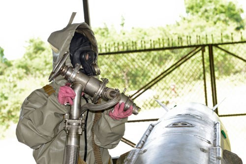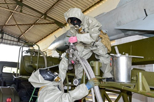 hiệp đồng nhịp nhàng với độ chính xác rất cao; đồng thời cũng rất cẩn trọng khi tiếp xúc với các loại nhiên liệu độc hại “O”, “Γ” … mồ hôi ướt đẫm trên lưng áo của những người lính trẻ, tất cả kíp huấn luyện như bước vào một trận chiến đấu.