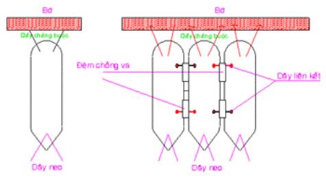 Nếu trong Khu neo đậu không có phao bù hoặc cọc neo và có nhiều tàu neo đậu, thì cần neo tàu theo hướng lái vào bờ, chằng buộc vào các vật sẵn có trên bờ và thả thêm 02 neo phía mũi tàu. Tối đa chỉ được neo 03 tàu liền nhau và giữa các tàu phải có đệm chống va và giây liên kết.
