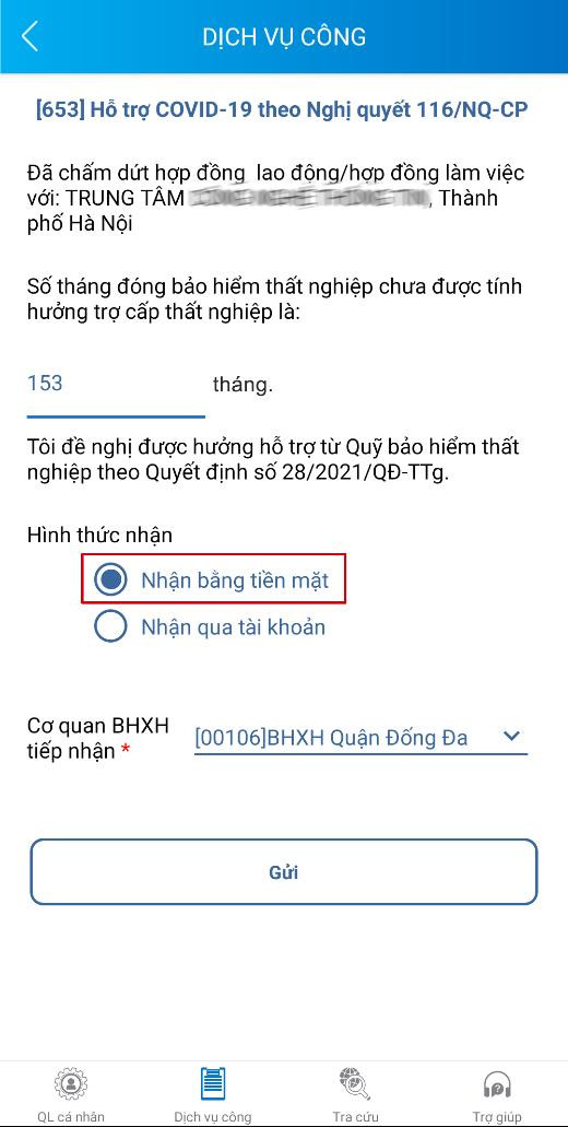 Bước 5: Lựa chọn hình thức nhận hỗ trợ: