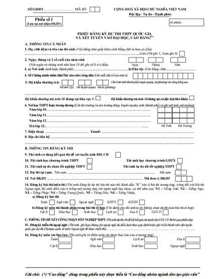 | Mẫu phiếu đăng ký dự thi và xét tuyển (Ảnh: Bộ GD&ĐT) |